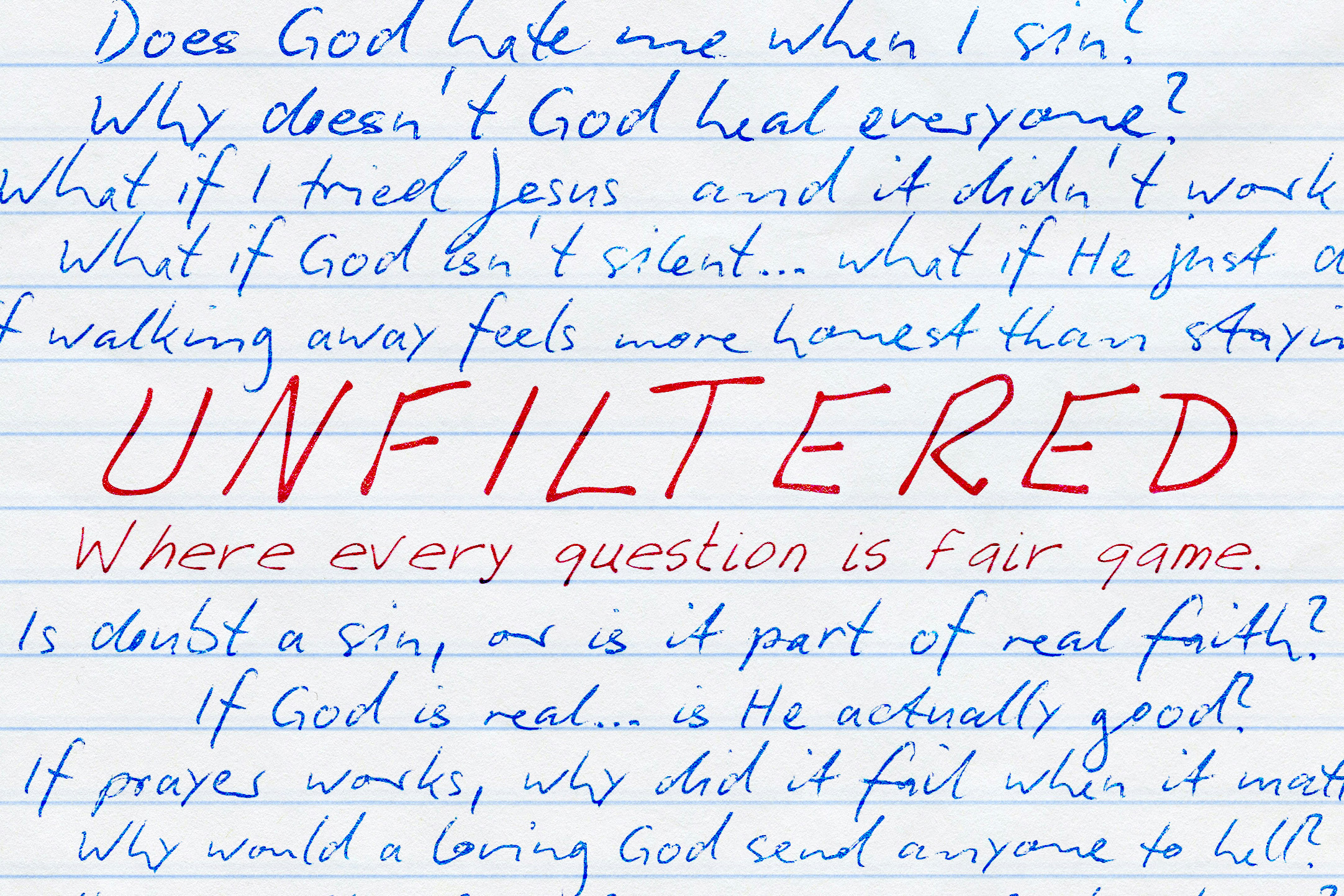 We all have hard questions. Questions that keep us up at night. Questions that feel unanswerable. And some of these questions deal with faith. Maybe we share them with close friends and maybe we keep them to ourselves. But keeping them hidden doesn’t lead to answers.